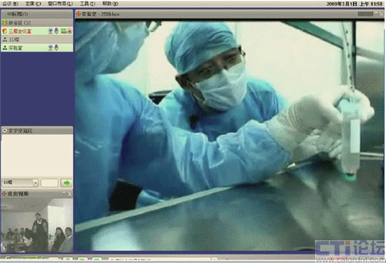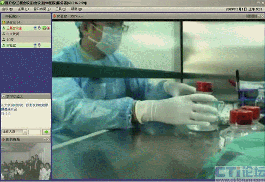 聽(tīng)完眾多專家的精彩介紹后,與會(huì)人員希望能夠看到干細(xì)胞移植治療的臨床應(yīng)用現(xiàn)場(chǎng)演示。而干細(xì)胞移植過(guò)程是在專門的實(shí)驗(yàn)室里面進(jìn)行,一是實(shí)驗(yàn)室的面積比較小,容納不了這么多人員參加,另外實(shí)驗(yàn)室環(huán)境要求非常嚴(yán)格。如何把實(shí)驗(yàn)室里面的現(xiàn)場(chǎng)演示展示給眾多與會(huì)人員,這令會(huì)議的組織者非常頭疼。山大聯(lián)潤(rùn)了解到濟(jì)南軍區(qū)總醫(yī)院遇到的困難后,派專門的技術(shù)人員與實(shí)驗(yàn)室充分交流,為他們提供了一個(gè)很好的可實(shí)施方案。在實(shí)驗(yàn)室安裝了一個(gè)可遙控的攝像頭,通過(guò)視維視頻會(huì)議遠(yuǎn)程遙控觀看實(shí)驗(yàn)室現(xiàn)場(chǎng)。在實(shí)驗(yàn)室里面的江主任與他同事一邊做實(shí)驗(yàn),一邊與場(chǎng)外的人員溝通交流。