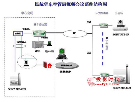 為了建成“具有華東特色,符合總局要求”的視頻會議系統(tǒng),空管局領(lǐng)導(dǎo)經(jīng)過嚴(yán)格的考察和甄選后,最后采用了Sony的視頻會議系統(tǒng)解決方案,包括5臺PCS-G70和10臺PCS-1P。整個項(xiàng)目運(yùn)行在民航數(shù)據(jù)網(wǎng)(ATM網(wǎng))的環(huán)境下,共有24個節(jié)點(diǎn),設(shè)備分布呈星型結(jié)構(gòu)。
