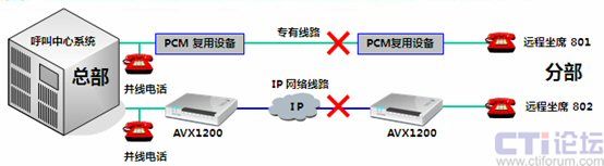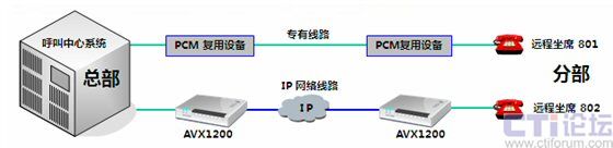 傲威通信采用AVX1200作為中心端和遠程坐席端的復(fù)接設(shè)備,采用Hotline形式,只要遠程坐席員摘機,中心端的呼叫中心交換機立刻接到摘機指令。當(dāng)有呼叫到來,遠程坐席可像本地坐席一樣接聽電話,無任何差異。