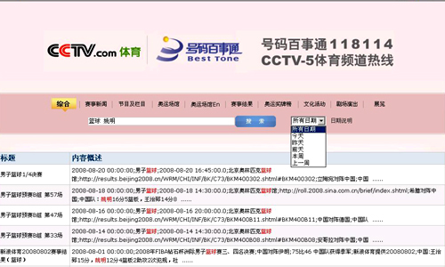 據(jù)悉,2008北京奧運會期間,118114“央視體育頻道熱線服務”共接受各類相關奧運的信息查詢近61萬次,日均查詢量超過35000次,是奧運開幕前的四倍之多。其中,8月15日的單日查詢量更是一舉突破50000次大關,創(chuàng)造了熱線開通以來的最高紀錄。
