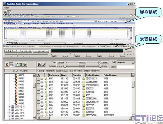 在對座席電話進(jìn)行語音錄音的同時(shí),Audiolog Screen Capture可對座席的電腦屏幕的變化及座席進(jìn)行業(yè)務(wù)的操作進(jìn)行同步記錄,可在回聽播放電話錄音的同時(shí),對座席在電腦屏幕上整個(gè)業(yè)務(wù)流程進(jìn)行重播。