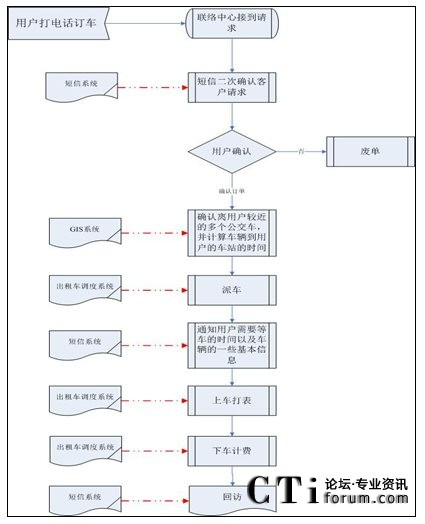 2009年最后一天的午后,我焦急的站在馬路上四處張望,在川流不息的車流中尋找一輛打著紅燈的出租車,在30分鐘之后,我失望了,對這個城市以及對這里的交通。我做了一個大膽的設想,如果我所在的位置恰好有一個出租車?空荆?空旧嫌幸徊拷K端設備類似于一臺電腦,輸入我的手機號碼,可以在這里定任何時刻的出租車,之后我的手機會收到確認短信,確認后會在我綁定的某一個公共消費的銀行或是直接有運營商扣除本地出租車的起步價,而同時,會把離我最近,接收到預定的出租車的摘要信息發(fā)送到我的手機,例如車主姓名,車牌號等。如果這樣,我可能就不會白白的浪費幾十分鐘的時間來做沒有意義的事情了。