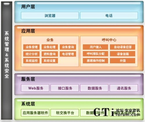 系統(tǒng)層是服務(wù)熱線系統(tǒng)的支撐層,包括系統(tǒng)運(yùn)行所必須的系統(tǒng)軟件,此部分一般為成型的軟件產(chǎn)品,不必進(jìn)行大量的開(kāi)發(fā)工作。