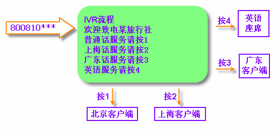 當客戶撥打電話進入MVB2000系統(tǒng)平臺的呼叫中心。通過IVR導(dǎo)航,可隨意打到各地的客戶端,再通過客戶端進行更加細致的分類。并且,每個客戶端都可以互相轉(zhuǎn)接。IVR流程可以無限下拉菜單。