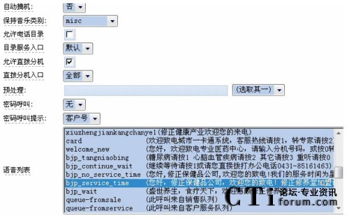 可以根據(jù)其自身業(yè)務(wù)的特點(diǎn),設(shè)定多個處理呼入電話的隊列。針對每個隊列,都可以設(shè)定固定接聽坐席和動態(tài)接聽坐席,以便根據(jù)來電情況,靈活調(diào)整某個隊列接聽話務(wù)員的人數(shù)。用戶還可以方便的設(shè)定每個隊列的等候音樂,隊列位置提示以及溢出路由。針對隊列中的各個坐席,用戶還可以靈活設(shè)定振鈴的策略。