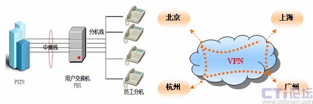 企業(yè)的傳統(tǒng)通信應用,在語音電話方面,主要是透過傳統(tǒng)PSTN,通過中繼線連接企業(yè)交換機。數(shù)據(jù)應用方面,分布在全國各個省市、自治區(qū)的分支機構(gòu)主要通過Internet,以E-mail方式聯(lián)絡。