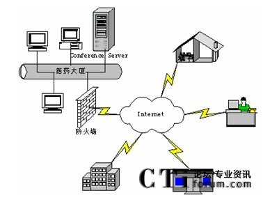 視頻會議服務器設置在上?偛,通過電信的6M帶寬接入互聯網,并配備有廣域網靜態(tài)IP地址。下屬生產基地和分支機構通過電信ADSL接入和光纖接入等方式接入互聯網。這些點能夠實現網絡視頻會議通訊,進行音頻、視頻和數據的多方溝通。