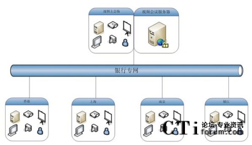 如圖,大新銀行視頻會(huì)議系統(tǒng)應(yīng)用規(guī)模為5個(gè)點(diǎn),包括香港、深圳、上海、南京、鎮(zhèn)江,服務(wù)器部署在深圳用來保證香港和內(nèi)地的鏈接效果,服務(wù)器出口帶寬為5M共享,各分會(huì)場通過專網(wǎng)訪問服務(wù)器。在這個(gè)網(wǎng)絡(luò)平臺(tái)上,紅杉樹網(wǎng)絡(luò)視頻會(huì)議所提供的高質(zhì)量音視頻圖像、方便易用的文檔、文件共享數(shù)據(jù)功能,使得大新銀行能夠在這個(gè)平臺(tái)上進(jìn)行從桌面討論到會(huì)議室正式會(huì)議等各種規(guī)模的應(yīng)用。在這個(gè)平臺(tái)上,除了進(jìn)行日常例會(huì)、業(yè)務(wù)交流等常見的應(yīng)用之外,業(yè)務(wù)培訓(xùn)、異地招聘等也是經(jīng)常進(jìn)行的內(nèi)容。業(yè)務(wù)人員利用數(shù)據(jù)功能,把平常培訓(xùn)很難懂的新銀行產(chǎn)品、費(fèi)率等進(jìn)行介紹,節(jié)約了以前培訓(xùn)所花費(fèi)的大量精力和時(shí)間,為新產(chǎn)品迅速占領(lǐng)市場掌握了主動(dòng)。