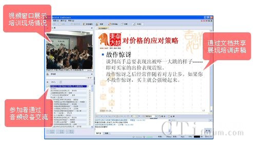 因為具備了流暢的音視頻溝通以及豐富的數(shù)據(jù)共享功能,IT企業(yè)不但可以利用該套系統(tǒng)實現(xiàn)內(nèi)部員工的溝通及培訓,還可以用來增強與顧客、供應商的交流,從而產(chǎn)生更多的新業(yè)務機會。利用最低的溝通成本創(chuàng)造最高的價值,提高了工作效率,降低了工作成本,一舉兩得,阿里巴巴就利用該套系統(tǒng)開啟了客戶培訓的新篇章: