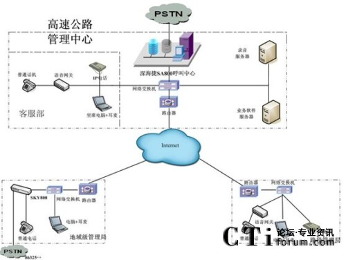 3)統(tǒng)一組網(wǎng):高速公路的地域特點(diǎn),要求省級(jí)、地域級(jí)的呼叫中心具有靈活的組網(wǎng)方式和統(tǒng)一的信令。例如:No.7信令組網(wǎng)。