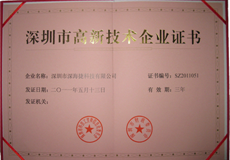 呼叫中心方案供應(yīng)商深海捷獲深圳高新技術(shù)企業(yè)認證