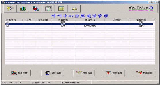 系統(tǒng)提供實(shí)時(shí)直觀的監(jiān)控界面,并提供各類實(shí)用的坐席監(jiān)控方法如:監(jiān)聽、強(qiáng)插、強(qiáng)拆等功能操作,從而實(shí)現(xiàn)了對各應(yīng)用坐席的強(qiáng)有力的監(jiān)控、管理功能。