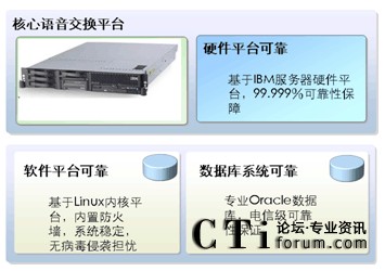 “網(wǎng)音托管”的核心IP語(yǔ)音平臺(tái)采用采用全球頂級(jí)的 VCX V7000系列IP語(yǔ)音交換平臺(tái),基于IBM服務(wù)器硬件平臺(tái)、專業(yè)Oracle數(shù)據(jù)庫(kù)、基于Linux內(nèi)核平臺(tái),內(nèi)置防火墻,提供電信級(jí)可靠保證。同時(shí)還擁有一套引以自豪的應(yīng)用軟件開(kāi)發(fā)管理規(guī)范。各部分模塊都是經(jīng)過(guò)多年應(yīng)用的成熟產(chǎn)品,充分保證了系統(tǒng)的穩(wěn)定性和可靠性。