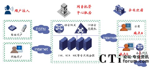 該結(jié)構(gòu)的突出特點(diǎn)是:企業(yè)在選擇“網(wǎng)音托管”的同時(shí),物理上屏蔽了“私網(wǎng)”與“外網(wǎng)”的聯(lián)系,適用于對(duì)網(wǎng)絡(luò)安全要求極高的用戶。