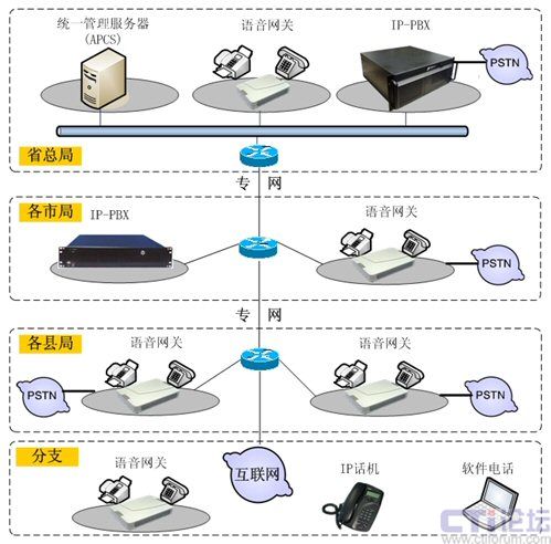 摘要:公司Zed-3(捷思銳科技)公司借助工商系統(tǒng)現(xiàn)有的數(shù)據(jù)專網(wǎng),在省局部署大型IP PBX,負(fù)責(zé)省局的分機(jī)注冊以及整套系統(tǒng)的路由規(guī)劃,在各市局部署中型IP PBX,負(fù)責(zé)市、縣局的分機(jī)注冊――充分利用現(xiàn)有資源、降低工作費用,擴(kuò)展新業(yè)務(wù),推進(jìn)工商系統(tǒng)通信網(wǎng)絡(luò)的全面提升。