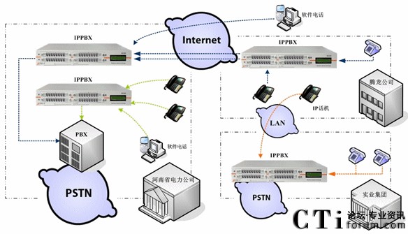 · “騰龍公司”需要組建內(nèi)部電話網(wǎng),并且可以與“河南電力”進(jìn)行VoIP通話?梢赃M(jìn)行電話會議;