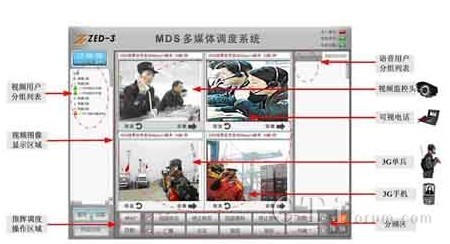 一方面,MDS系統(tǒng)可實現(xiàn)對行業(yè)用戶各種終端類型的調(diào)度,如通過有線IP網(wǎng)絡實現(xiàn)對有線調(diào)度話機進行語音調(diào)度,對固定點監(jiān)控攝像頭進行視頻調(diào)度;通過PSTN/GSM/CDMA/3G網(wǎng)絡實現(xiàn)對外線電話進行遠程語音調(diào)度;通過3G網(wǎng)絡實現(xiàn)對遠程單兵人員進行遠程音視頻調(diào)度;通過無線寬帶網(wǎng)絡實現(xiàn)對移動終端進行音視頻調(diào)度;通過IP網(wǎng)絡召開遠程視頻會議。