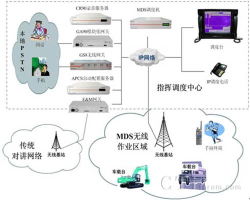MDS系統(tǒng)可以應(yīng)用于各種作業(yè)現(xiàn)場(chǎng)的指揮調(diào)度, MDS系統(tǒng)不但支持系統(tǒng)基本的語音通信,調(diào)度中心可以通過視頻、數(shù)據(jù)、文本消息等綜合的多媒體方式與作業(yè)人員進(jìn)行通信交互,滿足各種復(fù)雜環(huán)境下的指揮調(diào)度需求。系統(tǒng)可以通過GS8無線網(wǎng)關(guān)、GA90