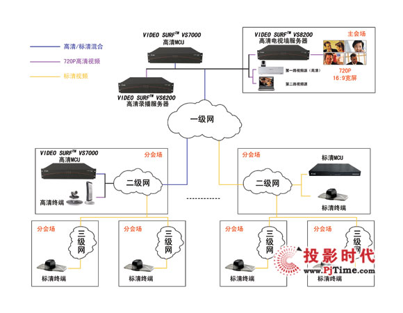 Amplesky大型高清視頻會(huì)議MCU級(jí)聯(lián)解決方案