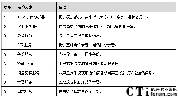 數(shù)字錄音系統(tǒng)通過模擬用戶線或者Lanside E1與交換機(jī)相連。當(dāng)錄音對象摘機(jī)通話時,交換機(jī)將數(shù)字錄音系統(tǒng)和被錄音通話雙方建立會議,并通過CTI向數(shù)字錄音系統(tǒng)發(fā)出錄音啟動命令;當(dāng)錄音對象結(jié)束通話時,交換機(jī)將數(shù)字錄音系統(tǒng)和被錄音通話雙方拆除會議,并通過CTI向數(shù)字錄音系統(tǒng)發(fā)出錄音結(jié)束命令。