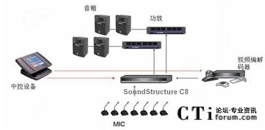 根據(jù)用戶的需求,結(jié)合用戶會(huì)議室現(xiàn)有的設(shè)備,我們選用寶利通具有獨(dú)特聲音處理技術(shù)的音頻處理平臺(tái)——SoundStructureC8。SoundStructureC8連接本地麥克風(fēng)和功放系統(tǒng),通過反饋聲抑制的功能來消除本地?cái)U(kuò)聲導(dǎo)致的嘯叫,保證會(huì)議室的聲音效果。C8聲音處理系統(tǒng)還可以和視頻會(huì)議以及電話會(huì)議一起使用,解決遠(yuǎn)程會(huì)議的回聲和噪聲問題,改善會(huì)議質(zhì)量,提高會(huì)議效率。
