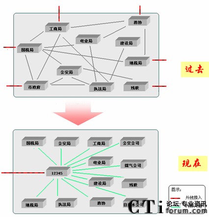 “12345” 政府熱線系統(tǒng)建設的最終目標,將要整合現(xiàn)有的全部政府部門公開電話資源,將所有的此類電話統(tǒng)一為一個號,使政府公開電話服務范圍覆蓋到政府公共服務的全部領域。通過12345電話網絡將各級機構服務電話資源進行互聯(lián)(市區(qū)縣政府、公安非應急電話、社保局、民政局、建設局、規(guī)劃局、國稅局、地稅局、教育局、衛(wèi)生局、文體局、旅游局、交通局、房產局等),這樣市民就不用再被這些部門上百個不同的電話號碼弄得無所適從,也不會因為弄不清楚事情歸哪個部門管了。