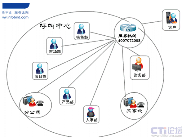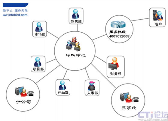 呼叫中心可以與企業(yè)的財(cái)務(wù)系統(tǒng)、OA系統(tǒng)、ERP系統(tǒng)、CRM系統(tǒng)等進(jìn)行整合,幫助企業(yè)輕松實(shí)現(xiàn)整個(gè)業(yè)務(wù)流程的管理、企業(yè)內(nèi)外溝通過(guò)程的管理。每個(gè)流程、每個(gè)節(jié)點(diǎn)都是可以被量化,可以被審查和糾正的。呼叫中心部門(mén)已經(jīng)不再局限于對(duì)客戶的服務(wù)提供,已經(jīng)完全成長(zhǎng)為一個(gè)提升企業(yè)效率和運(yùn)營(yíng)能力的服務(wù)管理部門(mén)。通過(guò)下表我們看到呼叫中心在組織中的職能架構(gòu)發(fā)生變化,已經(jīng)完全成為與客戶溝通的最重要的部門(mén)之一。