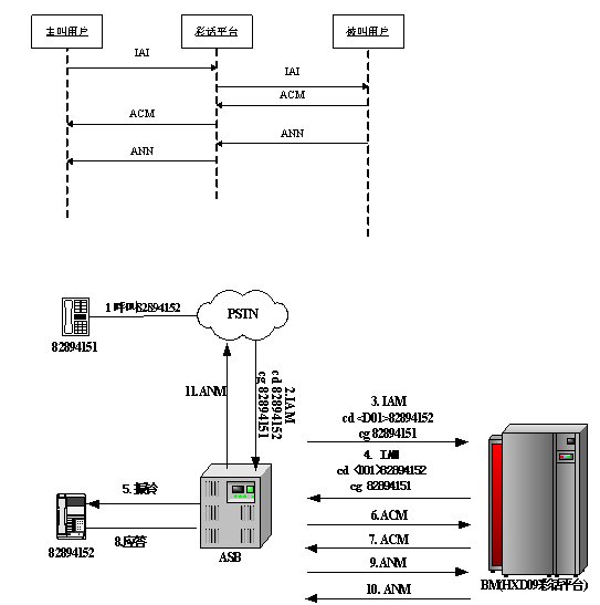 被叫彩話是指呼叫到達(dá)被叫方交換機時,被叫方交換機檢測被叫擁護是否設(shè)置彩話業(yè)務(wù),如果沒有甚至彩話業(yè)務(wù),則直接向被叫用戶發(fā)起呼叫,當(dāng)被叫用戶摘機應(yīng)答后將雙方連接起來通話;如果設(shè)置了彩話業(yè)務(wù),則被叫方交換機將做兩個動作:第一為向被叫用戶發(fā)起呼叫,第二為向彩話平臺發(fā)起呼叫,當(dāng)被叫用戶摘機應(yīng)答后,在被叫交換機上將產(chǎn)生一個會議,將主叫用戶、被叫用戶和彩話平臺加入到會議中。