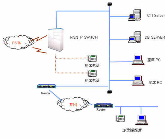 基于深圳某網(wǎng)絡(luò)購物呼叫中心的需求特點(diǎn),HXD IP Switch擁有自己的CTI、IVR、錄音等核心功能,這些核心功能都由HXD公司提供,支持IP分布式坐席。單板平滑升級(jí)擴(kuò)容,交換機(jī)擁有電信級(jí)別的穩(wěn)定性,基本業(yè)務(wù)托管功能,能在應(yīng)用程序的PC down機(jī)的情況下進(jìn)行基本業(yè)務(wù)功能(例如電話接聽等)。這一功能為企業(yè)的服務(wù)形象提供了有力保障。