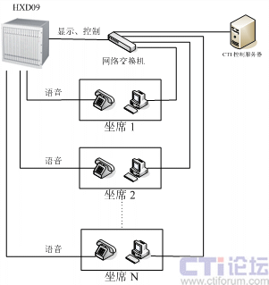 HXD09交換機的CTI 控制服務(wù)器,通過客戶端的DDE連接,將來電顯示號碼傳送到坐席的OPENVIEW系統(tǒng)。CTI