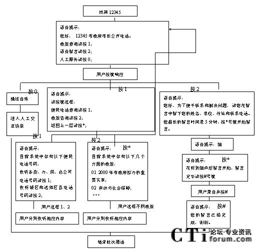 CTI論壇(ctiforum)07月10日消息: 12345政府熱線,是一個建立在開放的系統(tǒng)平臺之上,采用全中文、圖形化交互式的操作界面,提供開放的接口,能與其他信息、服務(wù)系統(tǒng)連接的系統(tǒng),該系統(tǒng)的設(shè)計開發(fā)具有先進(jìn)性、安全可靠性、可擴充性、易用性、友好性等特點。通過政府12345熱線的工作人員在信息系統(tǒng)的平臺上以7X24小時方式運行工作。在該系統(tǒng)工程的設(shè)計上還要充分考慮項目實施后可能發(fā)生的突發(fā)性規(guī)模放大量,為未來的發(fā)展趨勢,預(yù)留足夠擴容空間,并考慮到由此可能造成的對系統(tǒng)架構(gòu)、技術(shù)實施方案、資源配置等所進(jìn)行的相應(yīng)改動,及如何提供開發(fā)工具去滿足不同時期的需要。