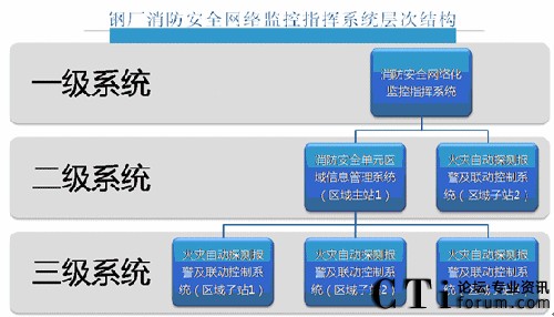 二級系統(tǒng)為“消防安全單元區(qū)域信息管理系統(tǒng)(區(qū)域主站)”,設(shè)在消防控制中心,是分廠級的消防安全信息管理中心,是一級和三級系統(tǒng)之間信息上傳下達的匯接點,其功能為:①及時上傳安全單元區(qū)域的火災(zāi)信息給消防安全監(jiān)控指揮中心;②對本單元區(qū)域的一級系統(tǒng)進行實時監(jiān)控和管理;③與分廠級生產(chǎn)信息管理中心進行信息交互和應(yīng)急聯(lián)動;④與其它消防安全單元區(qū)域信息管理系統(tǒng)進行對等通訊聯(lián)絡(luò)。
