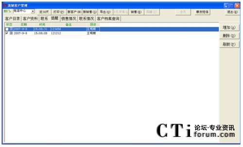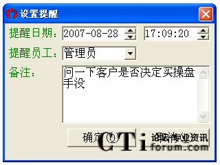 選定記錄并單擊新提醒,可以設(shè)定新的對該客戶的回訪時間。