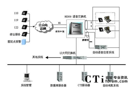 該系統(tǒng)主要分為電信子系統(tǒng)(完成聯(lián)動中心與各電信公司之間話音的傳輸、交換和分配,以及主叫號碼和主叫地址的自動查詢和傳輸?shù)龋、接警中心子系統(tǒng)(統(tǒng)一接聽和處理市民的報警、求助電話)、指揮調(diào)度子系統(tǒng)(或稱為處警中心,通過直觀的地理信息系統(tǒng)和數(shù)據(jù)庫,可以對所有的資源和警力分布了如指掌。通過一體化的無線數(shù)據(jù)傳輸和無線調(diào)度臺進行方便的統(tǒng)一管理,指揮和調(diào)度)、信息網(wǎng)絡子系統(tǒng)(聯(lián)動中心的骨干網(wǎng)絡,把各種數(shù)據(jù)數(shù)庫、接處警席位、移動的警用車載計算機等互聯(lián)在一起,形成一個強大的信息網(wǎng)絡)、無線指揮調(diào)度通信子系統(tǒng)、大屏幕顯示子系統(tǒng)、地理信息子系統(tǒng)、GPS/GIS子系統(tǒng)。