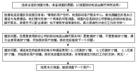 。。2、定期調查移動公司現有產品在用戶心目中的認知度:如調查用戶現在撥打長途固定電話是直接撥多呢?還是加撥17951多?經常使用電話QQ聊天嗎?
