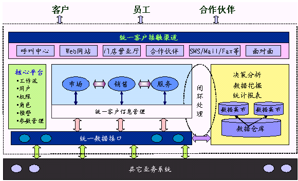 用于保險(xiǎn)公司的銷售、市場(chǎng)營(yíng)銷、客戶服務(wù)等同客戶有關(guān)的部門,使保險(xiǎn)業(yè)務(wù)處理的流程更加自動(dòng)化和更有效率,從而全面提高保險(xiǎn)公司同客戶的交流能力。運(yùn)營(yíng)型HollyCRM可以實(shí)現(xiàn)保險(xiǎn)的自動(dòng)銷售管理、時(shí)間管理、工作流的配置與管理、業(yè)務(wù)信息交換等功能;它將保險(xiǎn)的市場(chǎng)、銷售、服務(wù)、支持等全部集成起來,并與保險(xiǎn)的管理與運(yùn)營(yíng)緊密結(jié)合在一起,形成一個(gè)市場(chǎng)導(dǎo)向、以客戶服務(wù)為中心、工作流程驅(qū)動(dòng)、分析與跟蹤控制的企業(yè)高效市場(chǎng)營(yíng)銷環(huán)境,以此提高企業(yè)的市場(chǎng)反應(yīng)速度、應(yīng)變能力和市場(chǎng)競(jìng)爭(zhēng)力。通過保險(xiǎn)CRM系統(tǒng),可將來自保險(xiǎn)核心業(yè)務(wù)系統(tǒng)的客戶交易數(shù)據(jù)和來自于其他客戶渠道獲得的客戶資料信息和服務(wù)信息有效地集成在一起,建立統(tǒng)一的客戶信息中心。