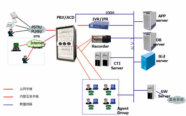 在建立呼叫中心前,廣州自來水公司只有覆蓋公司和各供水管理所的供水熱線系統(tǒng),該系統(tǒng)只有簡單的接入電話,沒有完善的呼叫中心功能,話務(wù)量承受能力小,接通率低,沒有統(tǒng)一的服務(wù)窗口和后臺,統(tǒng)計功能也只能靠手工實現(xiàn)。為了更好的為廣大市民服務(wù),廣州市自來水公司決定取消原先供水熱線工作模式,由公司成立客戶服務(wù)中心集中管理,建立基于互聯(lián)網(wǎng)的呼叫中心,負(fù)責(zé)全市范圍內(nèi)客戶服務(wù),使客戶能夠通過各種資訊工具如電話、傳真、電子郵件、短信等方式從自來水公司獲取用水信息,并能實現(xiàn)業(yè)務(wù)申請、投訴、業(yè)務(wù)受理、業(yè)務(wù)咨詢、業(yè)務(wù)查詢等,采用回?fù)芗夹g(shù)實現(xiàn)客戶回復(fù)、客戶回訪、客戶調(diào)查等業(yè)務(wù)。