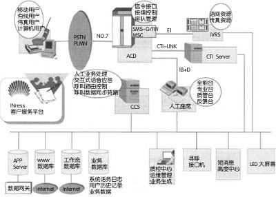 廈門郵政呼叫中心系統(tǒng)采用華為公司的INtess支撐平臺系統(tǒng)。該系統(tǒng)是華為公司針對客戶業(yè)務的特點及目前面臨的新形勢,結合網絡設備的現(xiàn)狀及未來發(fā)展而推出的。INtess系統(tǒng)是將交換技術與計算機網絡技術有機結合的CTI智能設備平臺,可涵蓋眾多客戶服務業(yè)務,并提供按技能、智能等多種路由方式的業(yè)務處理。