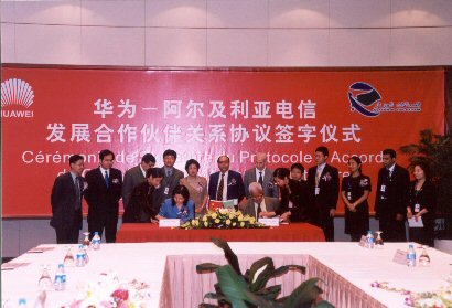 近日,阿爾及利亞電信董事長兼總裁謝第赫(CHETTIH)先生與中國華為董事長孫亞芳女士分別代表雙方公司,簽署了建立全面合作戰(zhàn)略伙伴關系的協(xié)議。雙方表示,將在CDMA、GSM、交換接入、傳輸和數據等各領域開展更全面深入的合作,同時強調了在技術交流、培訓及業(yè)務方面的交流與合作。