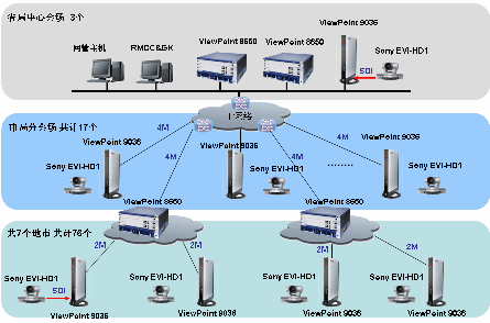 8650 高清MCU 6臺(tái),ViewPoint 9036 720P高清終端57臺(tái);省中心和青島局采用兩臺(tái)華為ViewPoint
