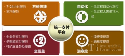為徹底解決繳費(fèi)難的問(wèn)題,全面提升鐵通用戶滿意度,降低欠費(fèi)率并提高整體寬帶續(xù)費(fèi)率,華創(chuàng)訊通公司推出統(tǒng)一支付平臺(tái),可幫助鐵通公司管理繳費(fèi)充值渠道,一點(diǎn)接入線上、線下多種支付渠道,包括鐵通總部網(wǎng)上營(yíng)業(yè)廳、移動(dòng)錢(qián)包、線下POS終端,全面支持鐵通公司各類預(yù)付、后付業(yè)務(wù)的繳費(fèi)。