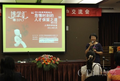 CTI論壇(ctiforum)6月3日消息(記者 張潔):2011年5月31日下午,上?茖W(xué)會堂思南樓九層賓客盈門,勝友如云。易才博普奧“博學(xué)匯”系列活動之四“危情時刻的人才保留之道”研討會在輕松愉悅的氛圍中拉開帷幕。本屆“博學(xué)匯”以“人才保留”為主題,邀請了業(yè)內(nèi)權(quán)威專家及其資深從業(yè)者就人才保留這一話題展開一系列探討。會上分別從學(xué)術(shù)觀點、呼叫中心、人力資源、服務(wù)外包等諸多領(lǐng)域來探討人才保留的種種新途徑、新方法。