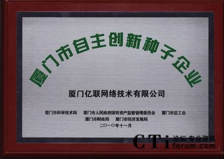 根據(jù)國家科技部、國務(wù)院國資委和全國總工會三部委制定的“創(chuàng)新型企業(yè)試點工作實施方案”和廈門市“技術(shù)創(chuàng)新引導(dǎo)工程實施方案”具體要求,市科技局、市國資委、市總工會、市財政局、市經(jīng)發(fā)局聯(lián)合開展了2010年廈門市自主創(chuàng)新示范、試點、種子企業(yè)評選工作。經(jīng)專家評審和市五部門聯(lián)合審核后,廈門億聯(lián)網(wǎng)絡(luò)技術(shù)有限公司(以下簡稱億聯(lián))憑借科技、環(huán)保的產(chǎn)品和強(qiáng)大的研發(fā)實力獲得了廈門市自主創(chuàng)新種子企業(yè)獎。