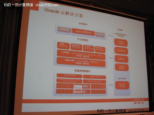 而甲骨文是關(guān)注公有云還是私有云呢?就如甲骨文“更多的企業(yè)最終將混合采用公有云和私有云”那樣,甲骨文的云計(jì)算策略是既支持公有云又支持私有云使客戶有選擇余地。不過喻思成也坦言,由于甲骨文關(guān)注企業(yè)市場,可能更多的精力還是放在私有云的建設(shè)上。