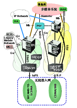 PDS采用MIP技術(shù),是支持多媒體的和傳統(tǒng)的移動(dòng)數(shù)據(jù)業(yè)務(wù)的網(wǎng)絡(luò)。AGW包括PDSN以及其他一些所需要的功能,提供了對各種接入網(wǎng)絡(luò)的公共接口。它提供移動(dòng)IP登記和鑒權(quán),支持外部代理(FA)和分組數(shù)據(jù)傳輸,切換、AAA客戶端、QoS管理和策略執(zhí)行等功能。歸屬代理(HA)主要完成用戶當(dāng)前附著點(diǎn)的登記和用戶IP包的前轉(zhuǎn)兩大功能。