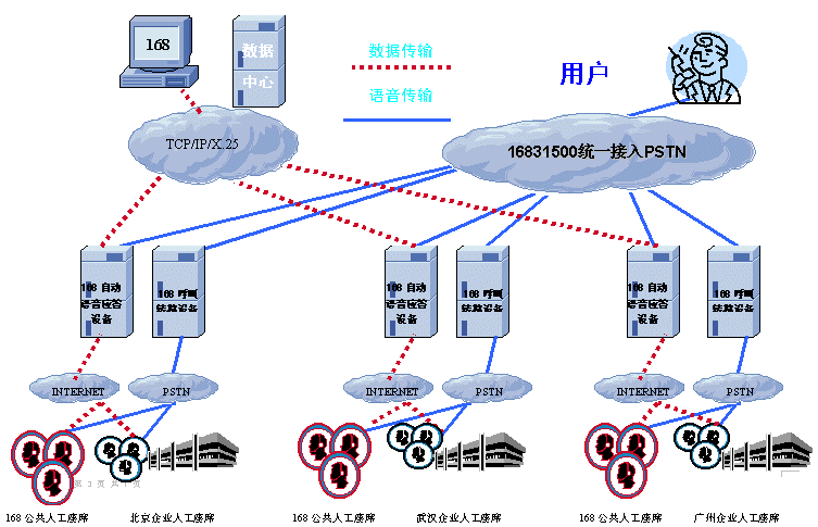 “中國電信168315企業(yè)客戶服務(wù)中心”利用分布在全國各地的168聲訊臺,為企業(yè)提供全國統(tǒng)一特服接入號碼以及統(tǒng)一的自動語音服務(wù)功能,包括信息發(fā)布、信息查詢、信息登記、語音留言、自動傳真等服務(wù)功能,消費(fèi)者在開通地區(qū)只需付市話費(fèi)就可以獲得企業(yè)的此項服務(wù)。針對消費(fèi)者在使用16831500-****電話中的語音自動應(yīng)答功能時,會遇到一些系統(tǒng)設(shè)計好的答案無法解決的模糊問題,消費(fèi)者只要按“0”號鍵,電話就被轉(zhuǎn)到企業(yè)在當(dāng)?shù)胤⻊?wù)人員的座席上,由專業(yè)人員來提供服務(wù)支持。也可以將消費(fèi)者的呼叫請求轉(zhuǎn)移到全國各地168臺的公共人工座席上,統(tǒng)一由168臺的外包服務(wù)座席提供服務(wù)。該系統(tǒng)為16831500智能電話網(wǎng)的自動語音應(yīng)答服務(wù)功能提供充分的人工服務(wù)支持。