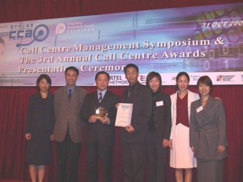 香港 2002年10月31日-在全球呼叫中心業(yè)享有盛譽的香港客戶中心協(xié)會日前宣布了2002年度各獎項獲獎名單。在今天下午舉行的第三屆年度呼叫中心頒獎典禮上,飛翱網(wǎng)訊成為年度最佳呼叫中心獎得主之一。這是繼去年以來,飛翱網(wǎng)訊連續(xù)第二年獲此殊榮。與此同時,來自于飛翱網(wǎng)訊香港公司的業(yè)務(wù)主管,Gray Ho先生被授予了呼叫中心團隊領(lǐng)導(dǎo)人優(yōu)勝獎。