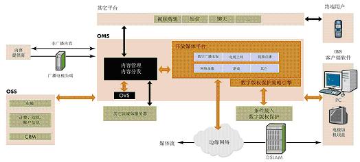 5950 OMS開放媒體套件提供了運(yùn)營商開展寬帶娛樂業(yè)務(wù)所需要的各種管理軟件,包括用戶管理、業(yè)務(wù)管理、內(nèi)容資產(chǎn)管理、內(nèi)容分發(fā)、數(shù)字版權(quán)管理、機(jī)頂盒管理、計(jì)費(fèi)營帳等。