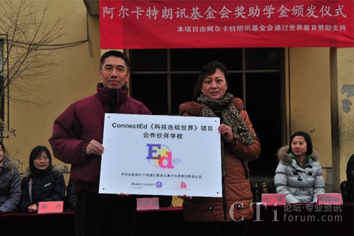 CTI論壇(ctiforum)3月6日消息(記者 浩宇):近日,法國阿爾卡特朗訊基金會(huì)(Alcatel-Lucent Foundation)與美國非營利組織世界教育(World Education)在北京市大興區(qū)農(nóng)民工子弟學(xué)校——龍海學(xué)校聯(lián)合舉辦公益助學(xué)活動(dòng),來自阿爾卡特朗訊中國旗艦企業(yè)——上海貝爾及世界教育的志愿者為45名貧困生、72名成績(jī)優(yōu)秀學(xué)生、244名成績(jī)進(jìn)步獎(jiǎng)獲得者共計(jì)361人發(fā)放獎(jiǎng)助學(xué)金和獎(jiǎng)狀。此次活動(dòng)是ConnectEd“科技連結(jié)世界”項(xiàng)目協(xié)助流動(dòng)青少年“透過科技擁抱世界”系列公益活動(dòng)的重要一站,ConnectEd “科技連結(jié)世界”項(xiàng)目由阿爾卡特朗訊基金會(huì)(Alcatel-Lucent Foundation)與世界教育(World Education)共同在全球推動(dòng)。作為志愿者之一,上海貝爾執(zhí)行副總裁、阿爾卡特朗訊中國區(qū)產(chǎn)品與研發(fā)負(fù)責(zé)人莊靖博士參與了此次活動(dòng),并為阿爾卡特朗訊ConnectEd項(xiàng)目合作校揭牌。雙方還在北京市昌平區(qū)新源學(xué)校舉行了公益助學(xué)活動(dòng),為45名貧困生、39名成績(jī)優(yōu)秀學(xué)生、52名成績(jī)進(jìn)步獎(jiǎng)獲得者共計(jì)136人發(fā)放獎(jiǎng)助學(xué)金。