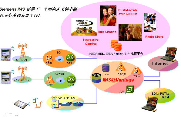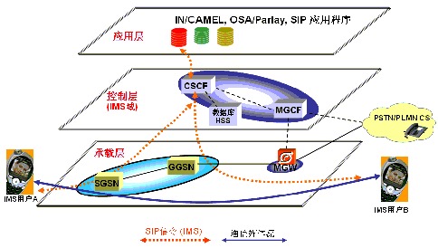 Function)、HSS(Home Subscriber Server)、MGCF(Media Gateway Control Function)等,這些網(wǎng)元通過執(zhí)行不同的角色,如信令控制服務器、數(shù)據(jù)庫、媒體網(wǎng)關服務器等,協(xié)同完成信令層面的處理功能,如SIP會話的建立、釋放。需要指出的是,這一層僅對IMS信令負責,最終的IMS業(yè)務流是不經(jīng)過這一層的,而是完全通過底層承載層做路由實現(xiàn)端到端通信。